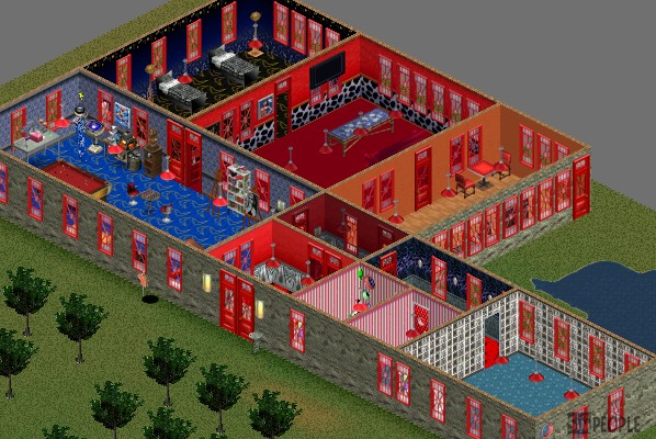 イマジンの家内部。 中央が玄関。 玄関から右2つがトイレ。 其の奥が風呂。 玄関左が遊びの部屋。 奥の黒い部屋が二人の寝室。 中央はリビングでその隣がダイニングキッチン。 正直イマジンだから超ハデハデハウスです。 デザイン酷いです。(笑) この二人ってメッチャ気さくで友達勝手に作りまくってます。(^-^) |